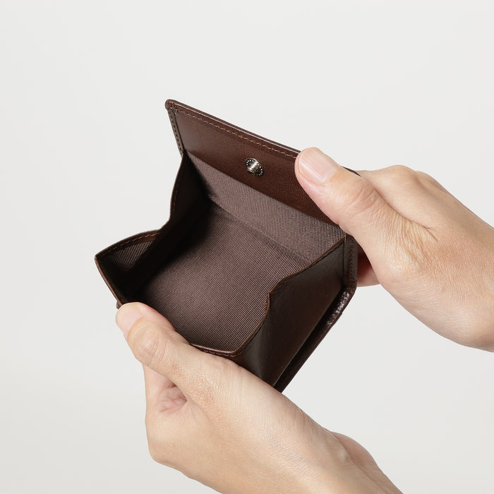 国産の栃木レザーを使用した、手触りよく経年変化も楽しめる日本製の小銭入れ。手のひらサイズのコンパクトながらも、BOXタイプのマチだから見た目よりも大容量で取り出しやすい構造。カードポケット部が二重になっており、たくさんのカードを収納できます。シンプルかつ使い易いデザインでビジネスシーンにもぴったりの商品です。栃木レザーならではの艶かな発色を楽しんでいただける7色展開。